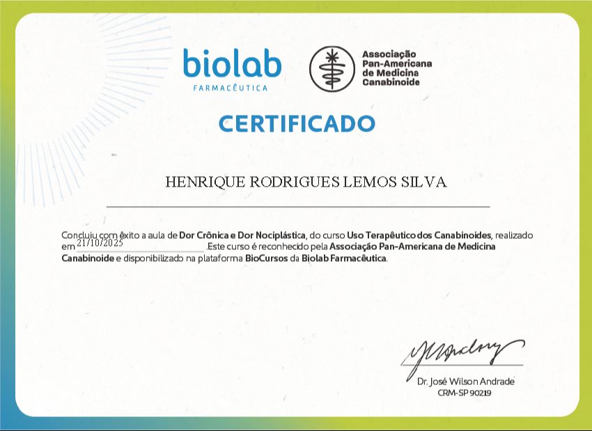 Dr. Henrique Lemos é formado em Medicina pela UFMG e Especialista em Anestesiologia pelo Hospital Felício Rocho em Belo Horizonte - MG Com seu Interesse na redução do sofrimento humano, fez especialização em Clínica da Dor e Cuidados Paliativos pelo Hospital das Clínicas da UFMG ( HC - UFMG).